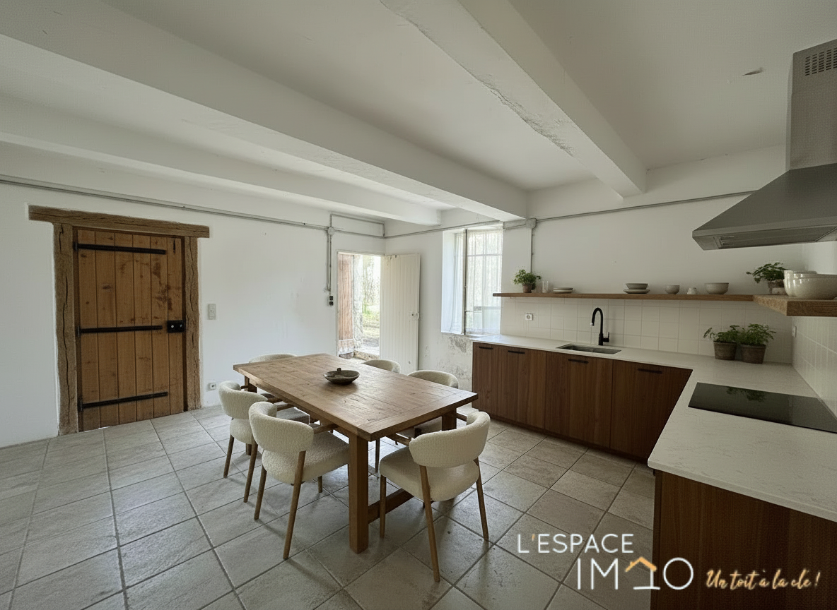 Cette authentique maison en pierre de 170 m2 offre un cadre de vie alliant caractère, espace et praticité.