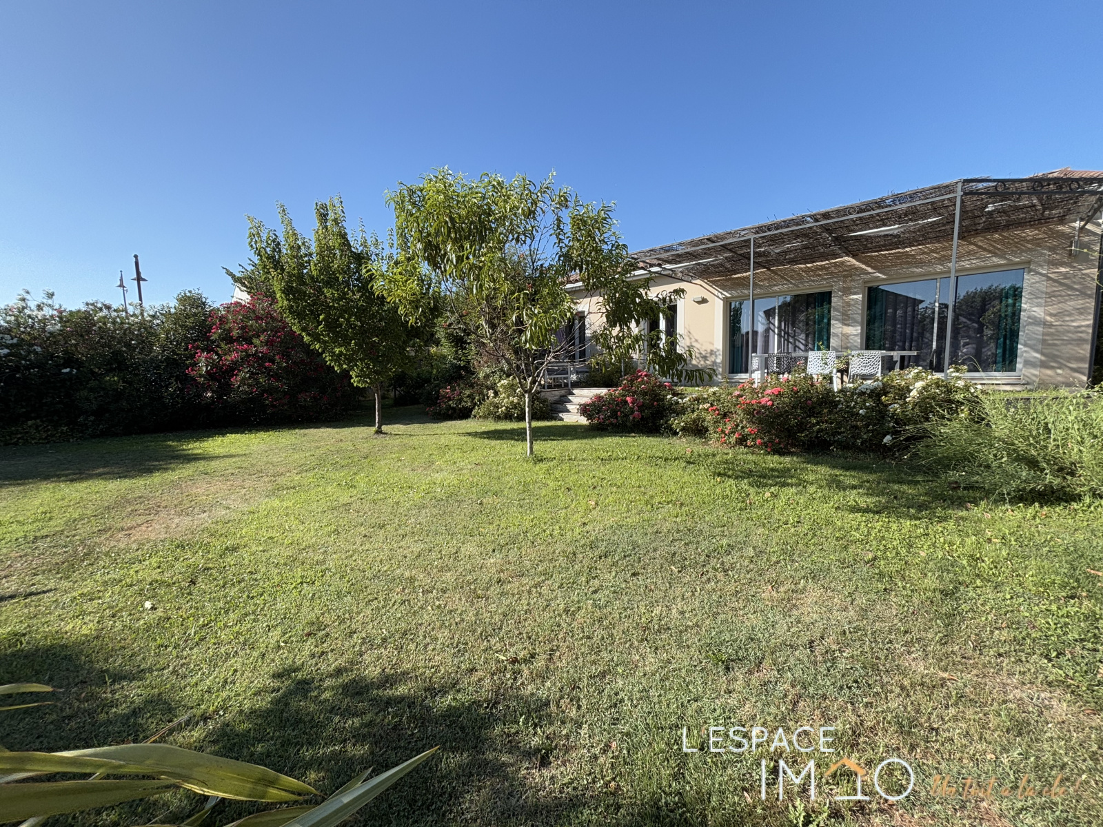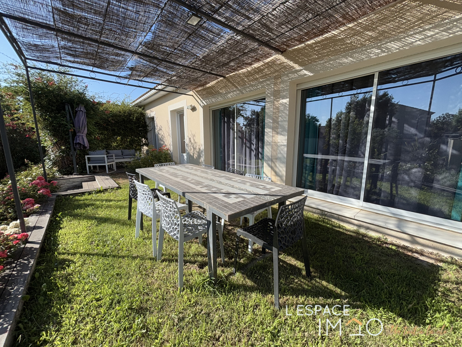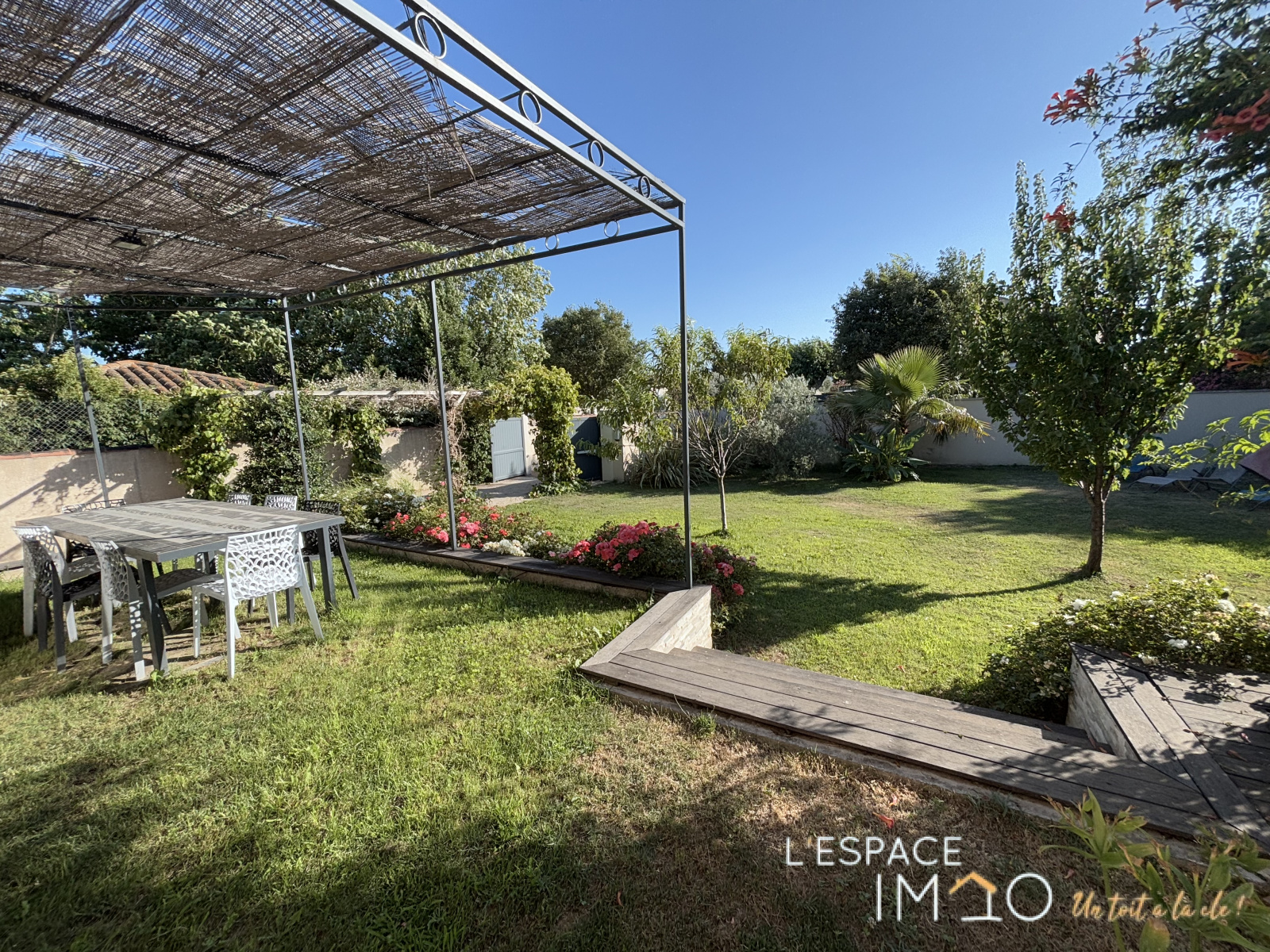 Elle est implantée de façon optimale sur le terrain, ce qui permet de profiter pleinement de tout l'espace extérieur sans vis à vis.